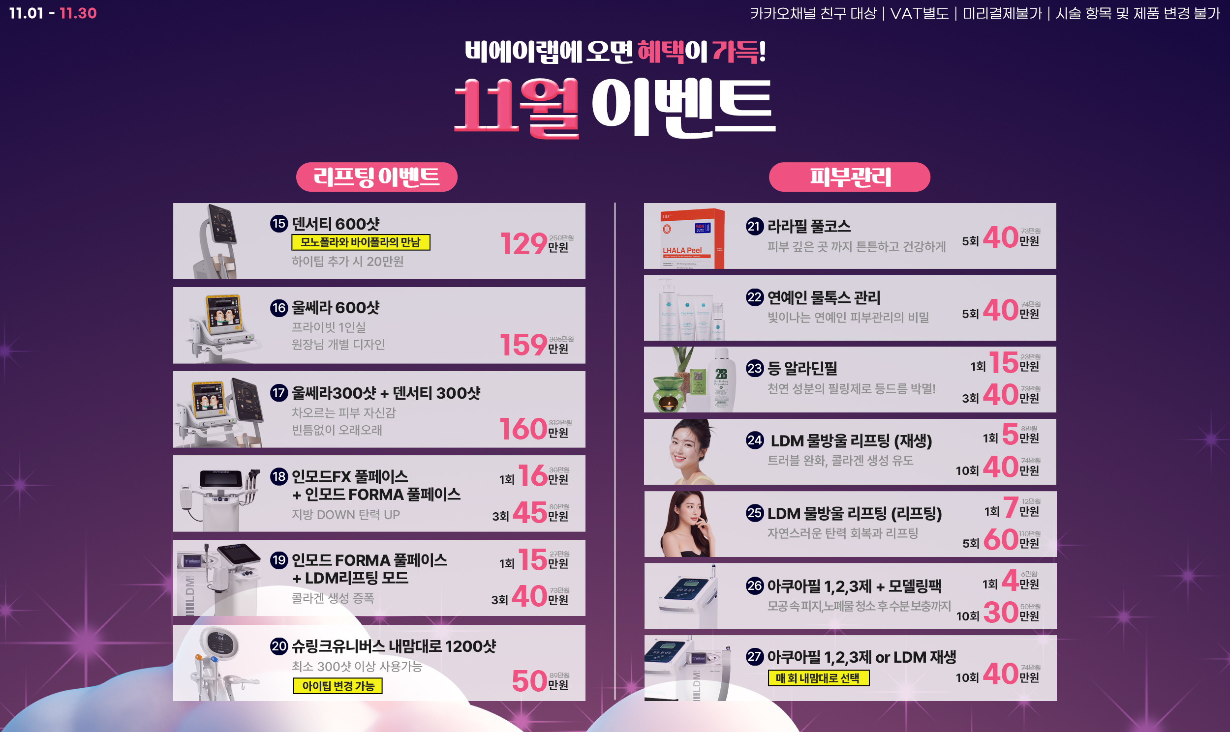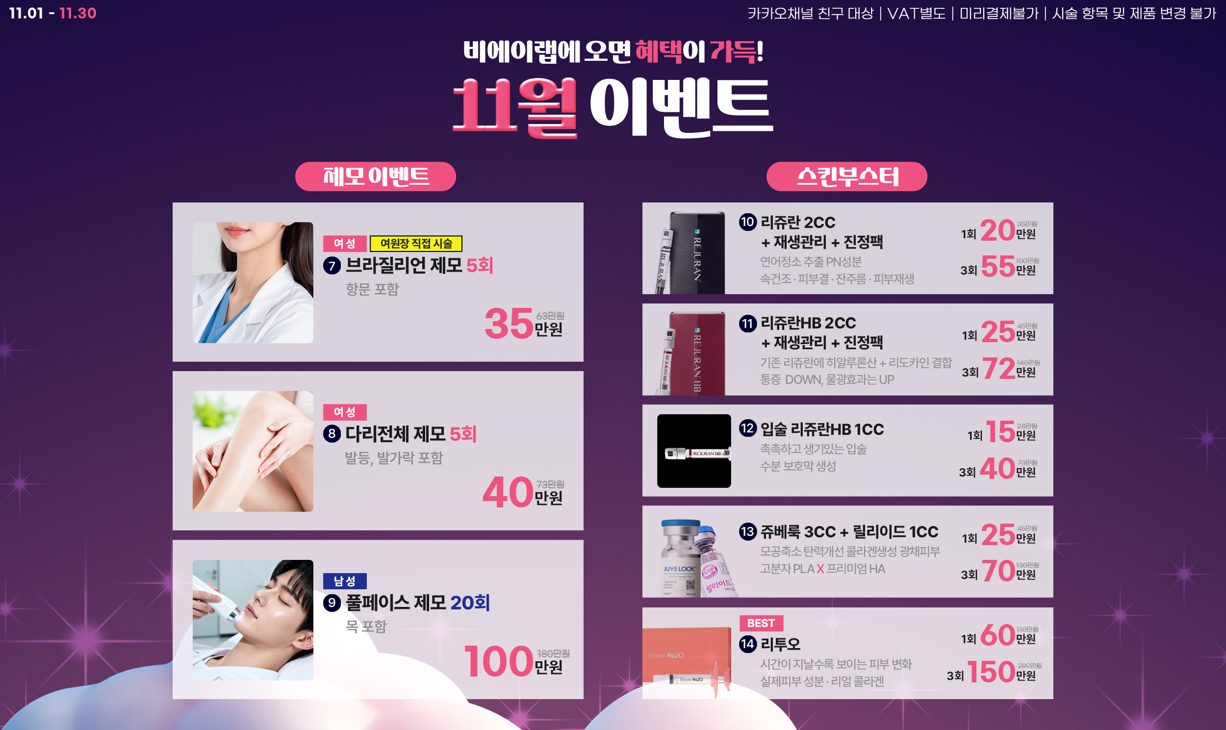 🩷11월 혜택 가득🩷 카카오톡채널 친구대상 · VAT별도