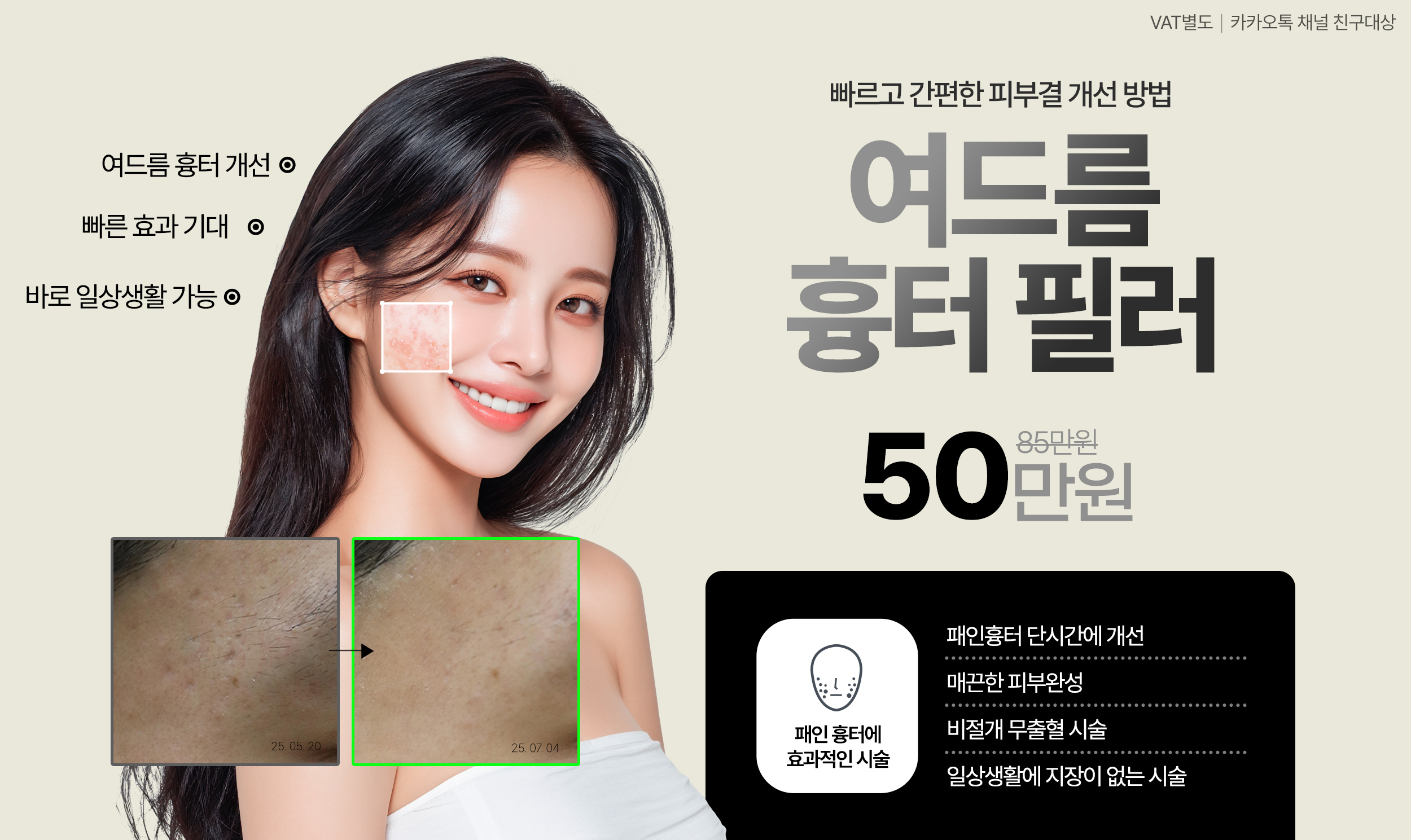 여드름 흉터필러 💉 카카오톡채널 친구대상 · VAT별도
