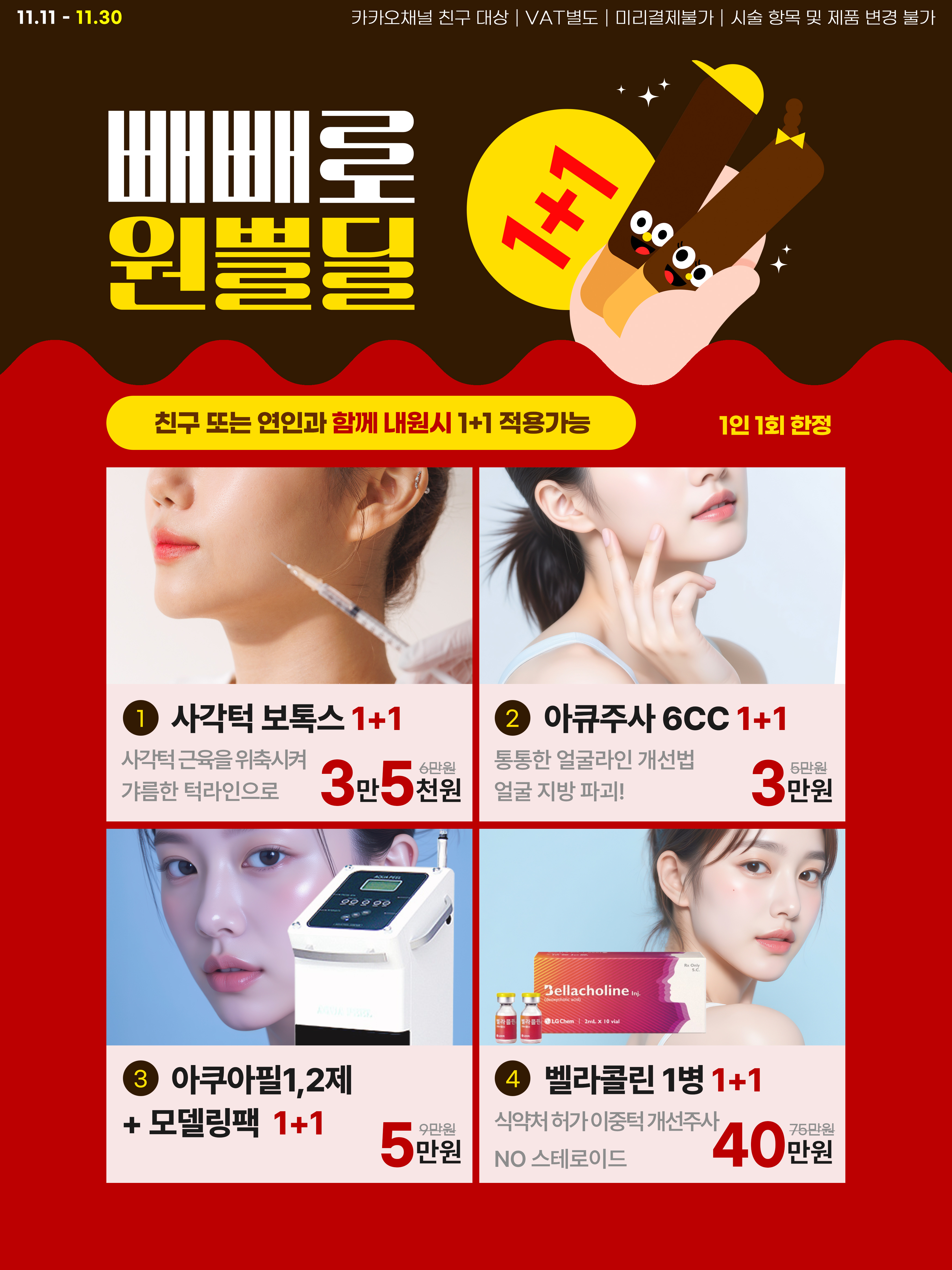 2025년 11월 빼빼로 꿀조합 1+1) 사각턱보톡스 + 아큐주사 6cc