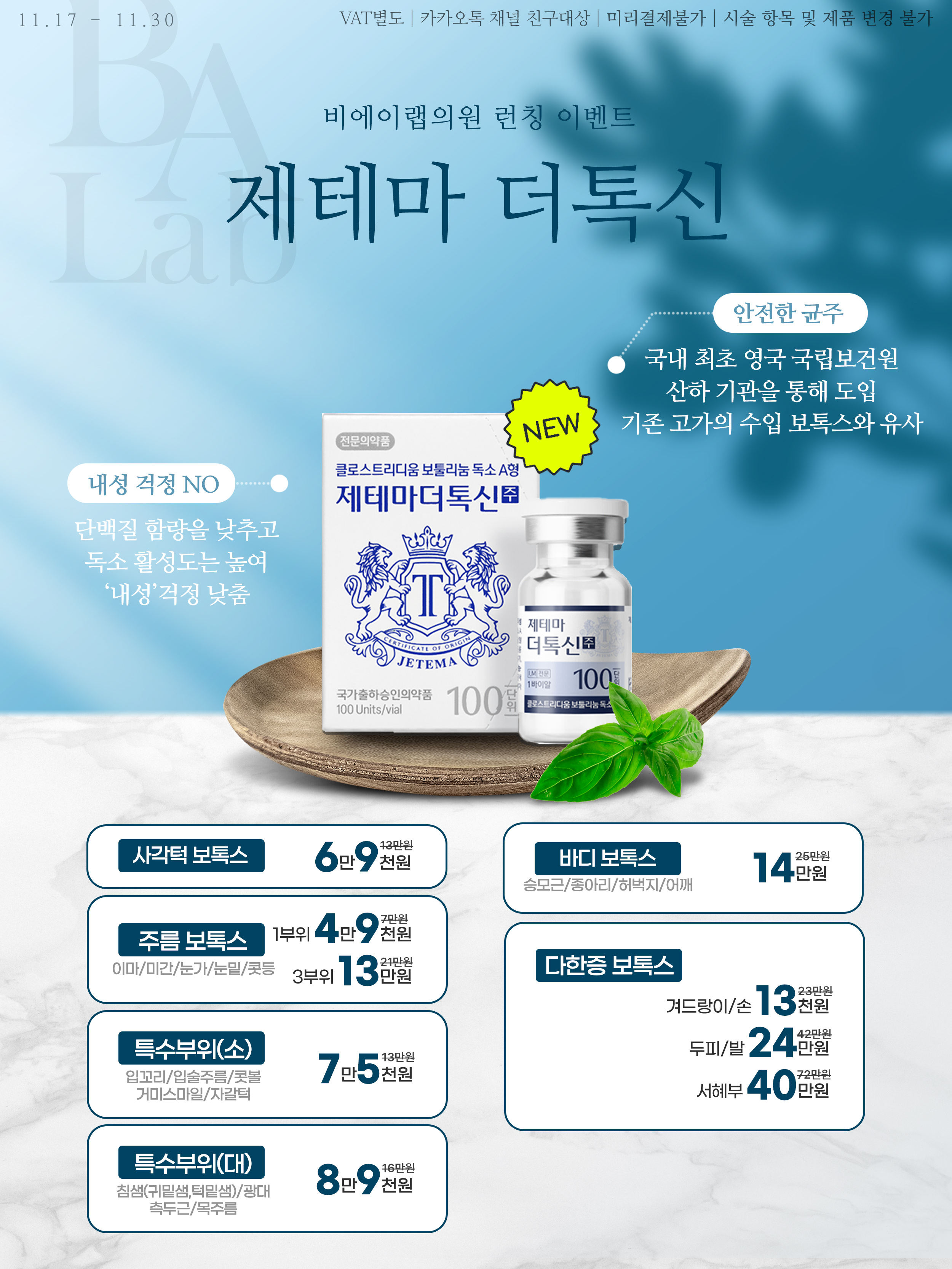 제테마 더톡신 런칭🩵 카카오톡채널 친구대상 · VAT별도